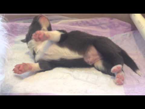 Marsut jaksavat hyvin ja pulskasti. Tossu ja Koru painavat jo yli 1kg, Sukka vähän alle. Viime yönä heräsin haukahteluun ja murinaan, äänimaailma monipuolistuu ;) Haparoivia pyrkimyksiä seisomaan nousemiseksi on myös otettu, vaikka huojunnan jälkeen päädytään varsin pian lähtötasolle. Liikkuminen on vielä ryömimistä, mutta välillä liikkuessakin on mahan alla kämmenen mentävä rako. Silmät ovat vielä kiinni, tosin juuri äskettäin katselin, että Tossu taitaa jo oikeaa silmäänsä hiukan raotella. Tein pienen videon ruokailun jälkeisistä tunnelmista, eivät olleet mitenkään virkeimmillään, mutta ehkä siitä kuitenkin saa hiukan käsitystä, miltä näytetään.